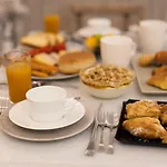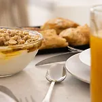 En frukostbuffé serveras här varje morgon. Det här hotellet ligger alldeles runt hörnet från Scirocco.